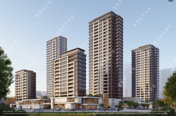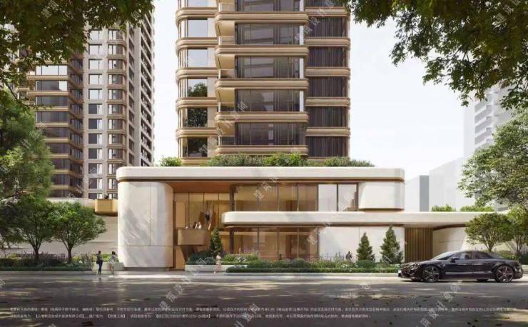 项目建筑外立面灵感源自名表马耳他十字工艺,采用名贵石材+金属铝板,以东方圆融思想整合以雕刻的石材锻打的金属,呈现出独特的人居地标美学。采用大量的玻璃幕墙,增强建筑的通透感和现代感。