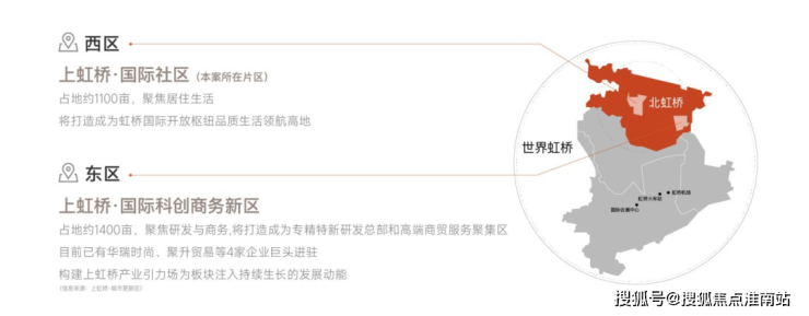 整体规划“东产西城:功能分区明确,产城融合共生。东区(约1400亩):聚焦商务研发,打造产业高地;西区(约1100亩):对标古北、碧云,倾力打造 新一代国际人文社区。其中,一期建筑规模总量约108万方,城市更新正不断加速。