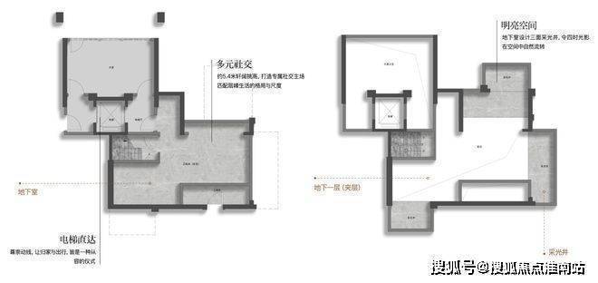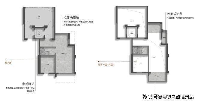 地下室挑高约5.4米,地下夹层层高约2.8米,双面采光井;
