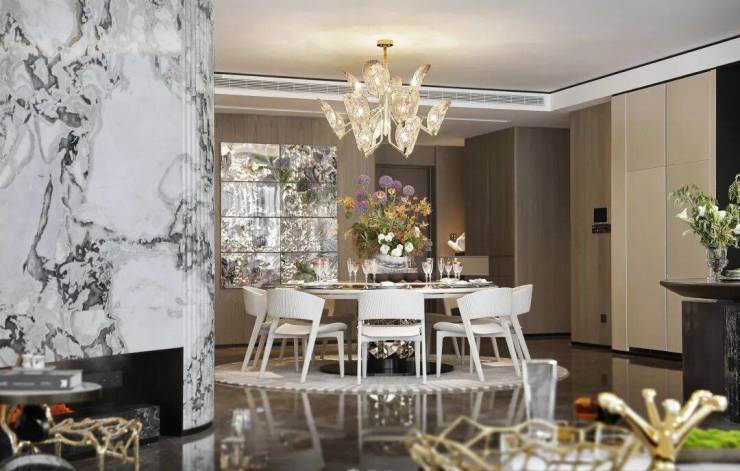 东边套样板间则由香港CCD郑忠设计,建筑外观的钻石切割面,在此成为室内设计的灵魂元素。