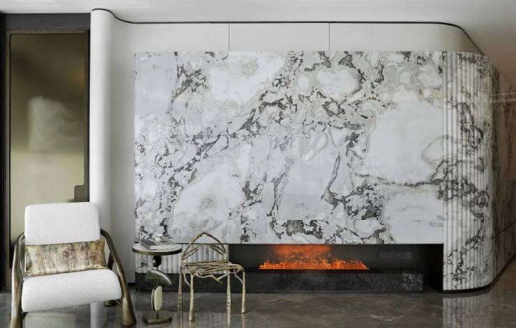 弧线造型的木饰面、多种肌理的艺术玻璃、水墨色调的雅士白大理石,摩登而明媚,将舒适度与仪式感调和得水乳交融。