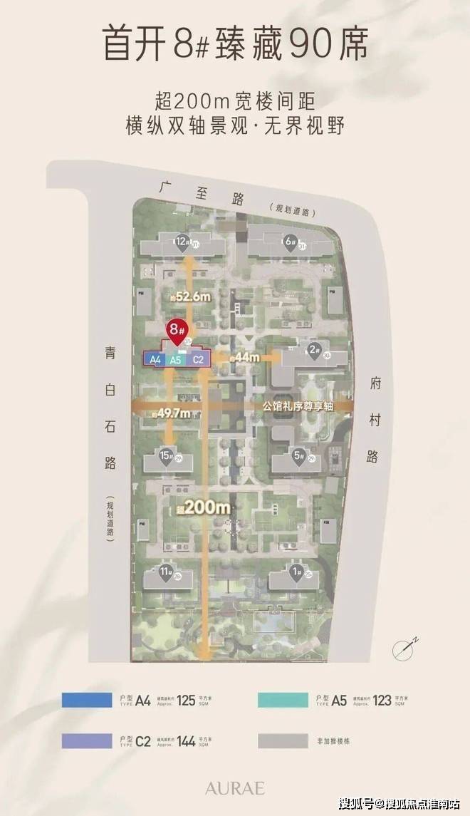 ✔ 距离核心景观轴均在黄金距离,视野无遮挡