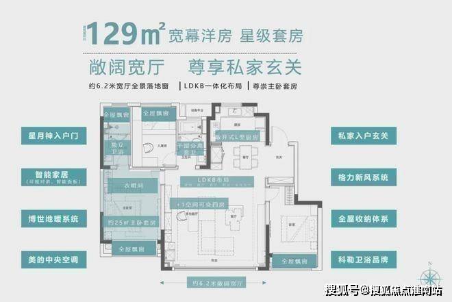 全系约5-6.2米敞阔宽厅,配合LDKB一体式设计,大部分面积补贴到家庭公区,大大强化了空间感。