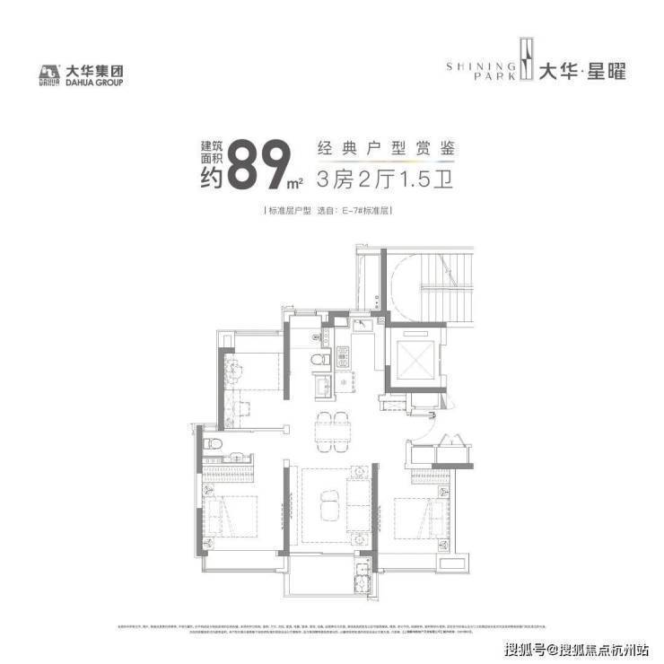 建面约89㎡3房2厅1.5卫▼