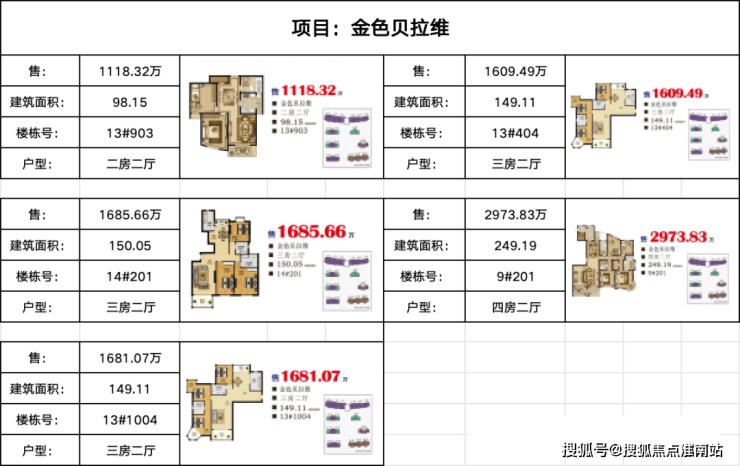 面积从98平的入门级2房-249平的二期最好4房户型。特别是159-168平的南北直通3房,186-249平的4房。
