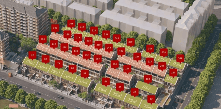 项目体量:共38套风貌别墅+2栋8层洋房,容积率约1.2,最大楼间距超10米。