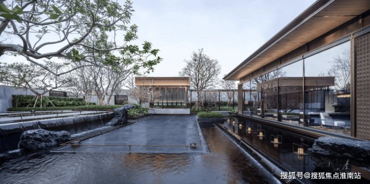 保利·海上瑧悦,即师法张园,延续了张园“以画入园、引水入园”的理念,将长约200m,约1000m²的水系覆盖到整个社区内,结合静水、叠水、瀑布等水景,再现古典意境。