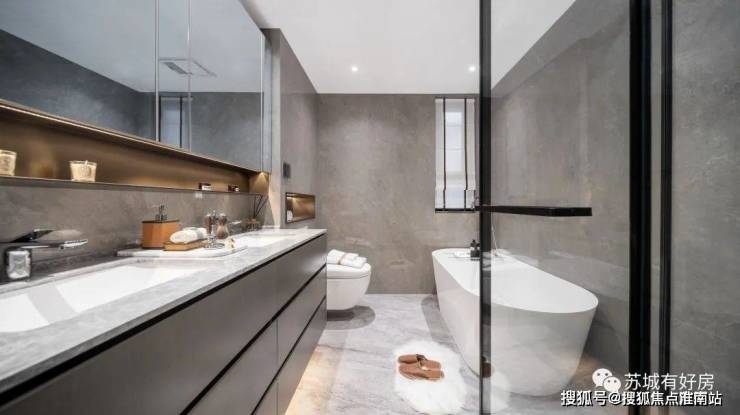 主卧衣帽间、卫生间,双台盆、淋浴、浴缸一应俱全