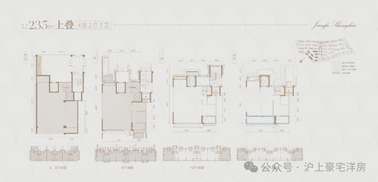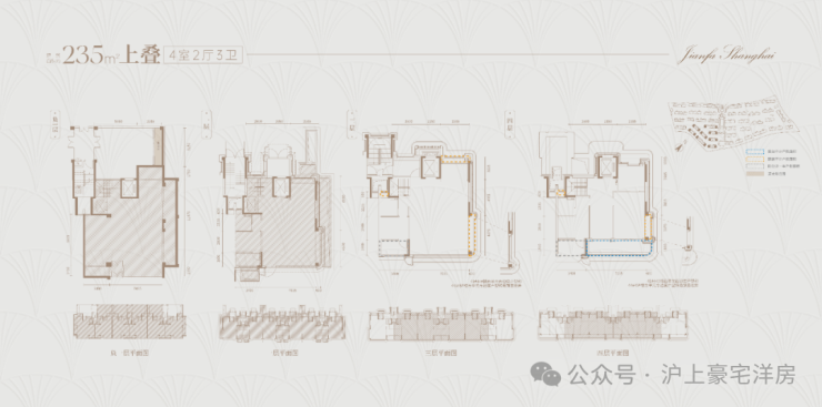 在售户型:105-235㎡3-4房/叠墅