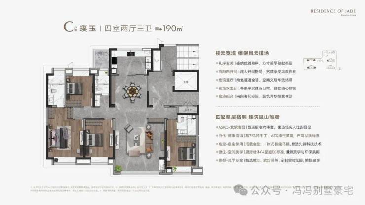 C户型 璞玉丨四室两厅三卫 建筑面积约190m²