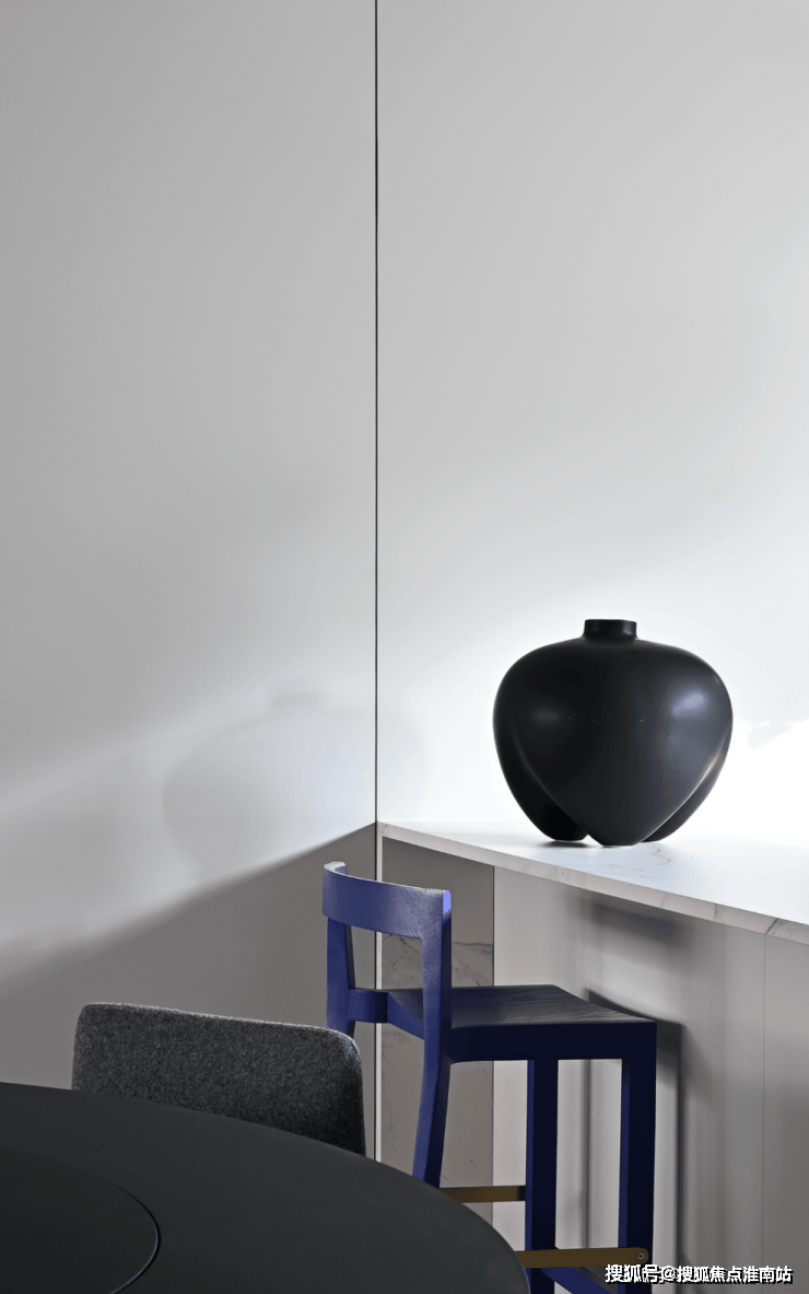 墙面棱角与家具线条直接简练,严谨的秩序中略有灵动之意。家正在理性与感性直接反复拉伸,温暖诠释着“容器”的意义——盛放时间,包容记忆,链接未来。