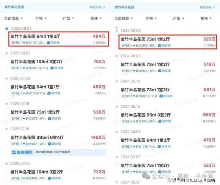 紫竹半岛,从今年7、8月成交记录来看,最新成交单价达到了7.49万/㎡,成交量&成交单价相较于去年同期都有了明显增长,且议价空间从去年的12%减少到了今年的2-3%!