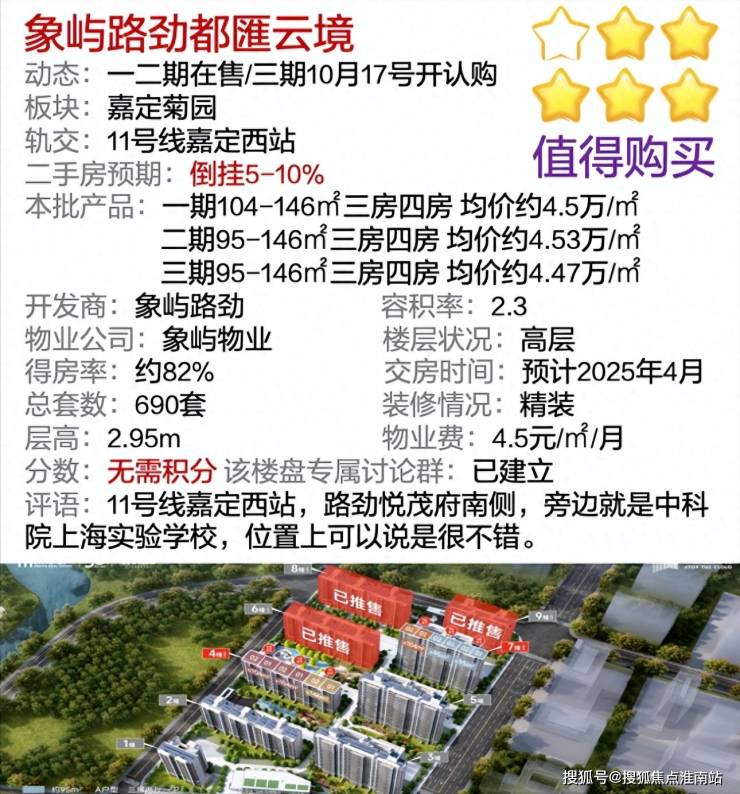 最新消息,嘉定新城「象屿路劲都匯云境」三期明天开始认购!推出建面约95-146㎡三房四房,均价约4.47万/㎡!