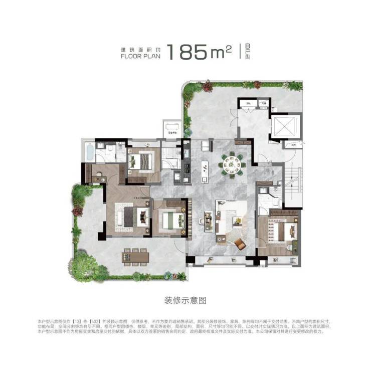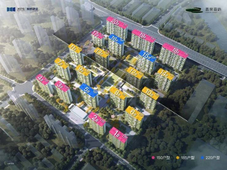 户型配置:约150㎡、185㎡、220㎡,户均约33-77㎡空中庭院