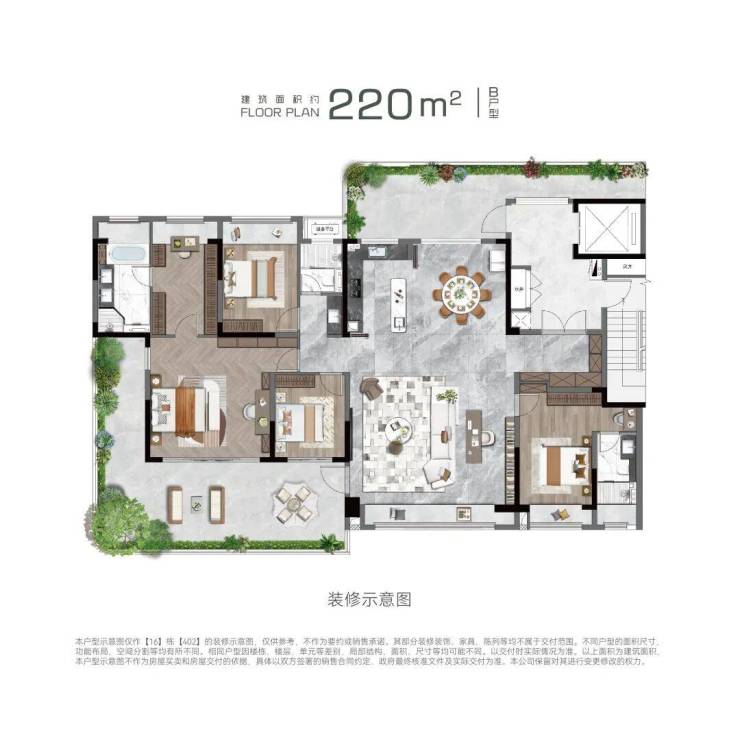 220平奇数层户型——四房三卫的双套房