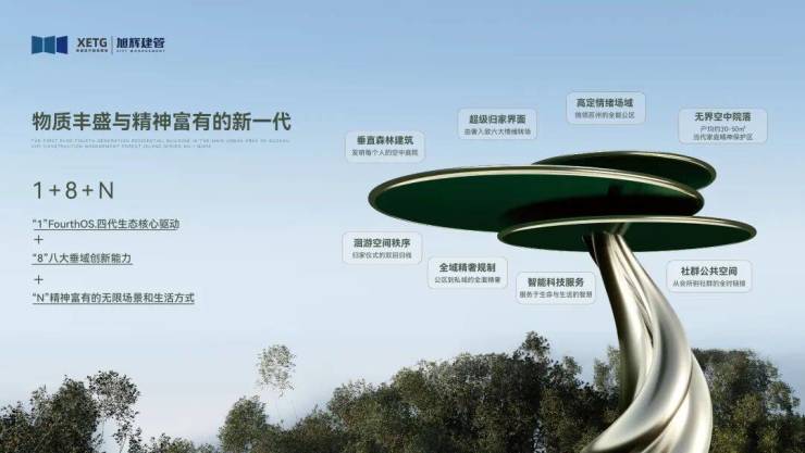 1(FourthOS.四代生态核心驱动)+8(八大垂域创新能力)+N(精神富有的无限场景和生活方式)。蠡棠森屿依托于FourthOS.四代生态系统进行垂域创新开发,从建筑立面到公区规划,从空中庭院到智能科技、社群营造等八大维度,建构一种从物质到精神的全新居住体验。