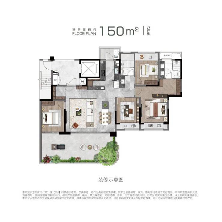 建筑面积约150㎡起,皆一梯一户大平层+约33-77㎡墅级空中庭院,比平层别墅化,比别墅人性化。