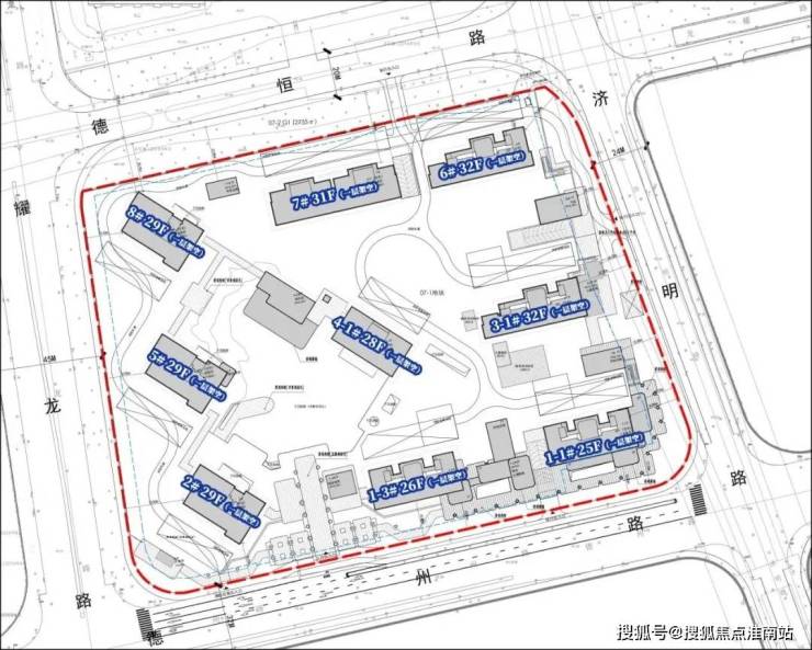 根据项目规划设计方案,07-01地块拟建9幢超高层住宅,其中7幢百米高层住宅(28-32层)、1幢83米高住宅(25层)和1幢86米高住宅(26层),若干社区配套用房以及部分商业设施,共计规划约794户。建面120㎡以下中小套型占比要求不低于40%。