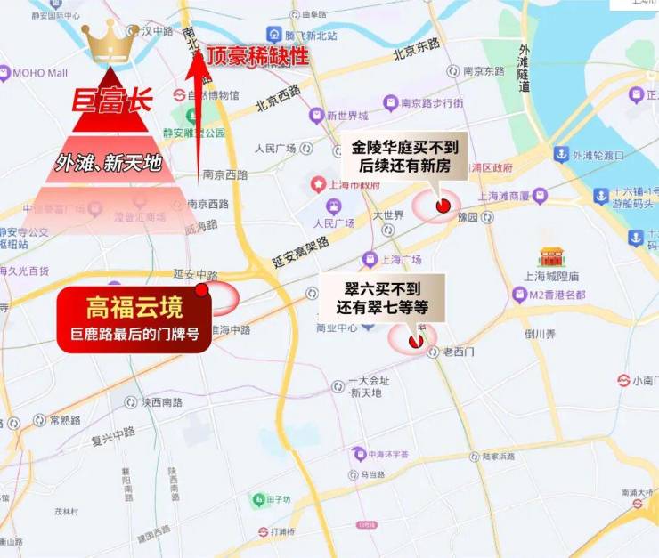 【高福云境】地处巨鹿路与瑞金一路交汇处,以巨鹿路99号锚定上海“人生巅峰地段”。
