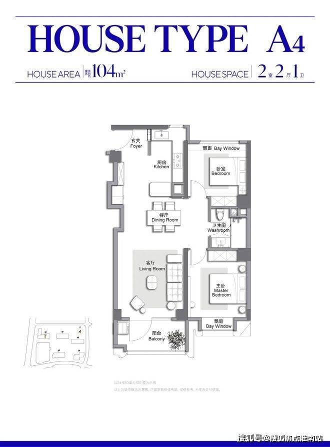 此外,客餐厅一体化、约 270° 弧形观景阳台配全卧飘窗皆为标配。、