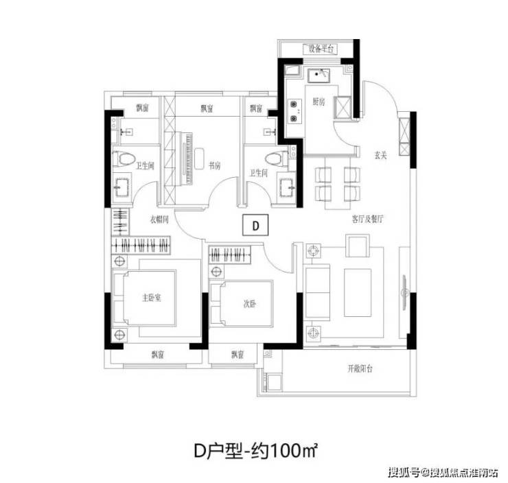 建面约100㎡3房2卫,阳光三房,同等面积更多功能;宽幅南向观景阳台,把居住变成风景;步入式衣帽间,给予生活更多从容。