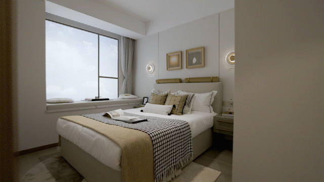 3、南向主卧打造了带衣帽间的酒店式套房,舒适感和品质感双重加持。