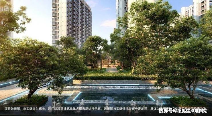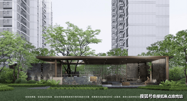 还能在归家的动线上体会到不同的景观节点:境隐门开(主入口空间)、悬廊叠瀑(水岸会客厅)、绿野拾趣(儿童乐园)、轻舞晓影(乐享氧吧)、樾下茶庭(宅前花园)、花香漫语(宅前会客花园)、轻氧花园(全龄活动区)。