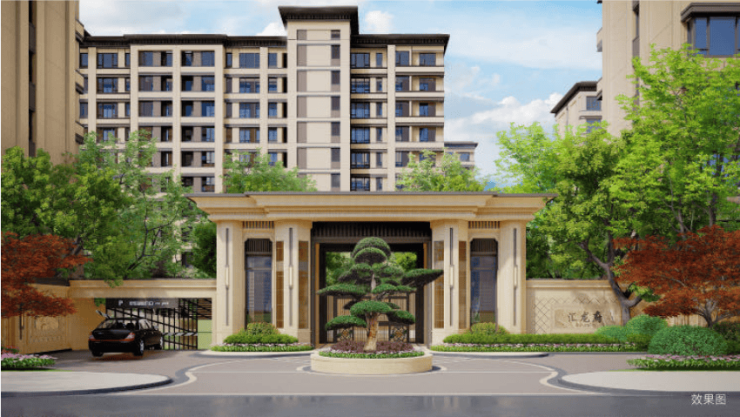 项目整体采用新中式主义风格,选用高档石材+真石漆,东方韵味十足,建筑的色彩、比例,仪式感与对称性,非常恢弘!
