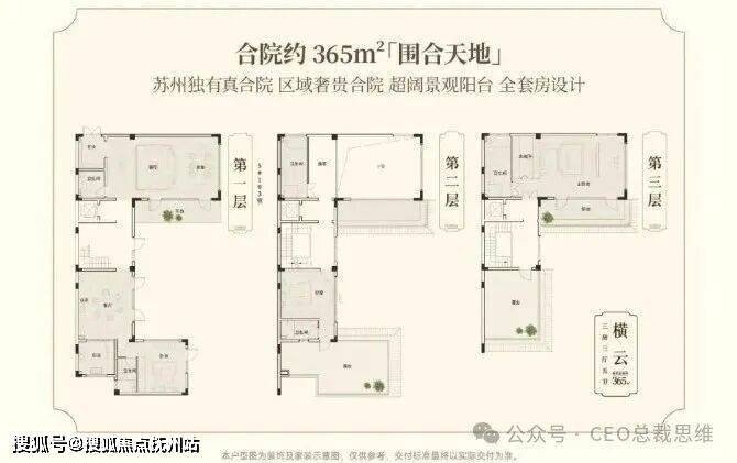 建面约335-390m²合院,是苏州独有真合院,也是区域鼎奢合院,大面宽短进深,大尺度地下空间,全套房设计,院落围合自成天地;