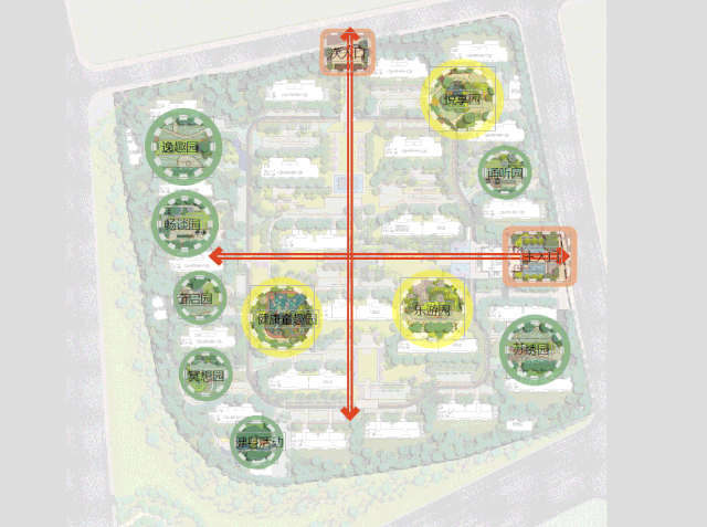 户外慢跑成为当今年轻人追求生活品质的一种标志,更多的是鼓励居住走出家门,增加运动时间。设立环园区跑道,增加跑步空间,追求跑步舒适感。