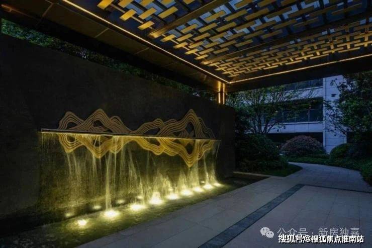 门禁入口,进入后,精致雕塑景墙引入眼帘。