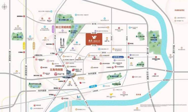 商业配套:3公里内覆盖五角场商圈(合生汇、万达广场、百联又一城);自带约2000㎡东川市集(上海首店)、睦邻餐厅、康养空间