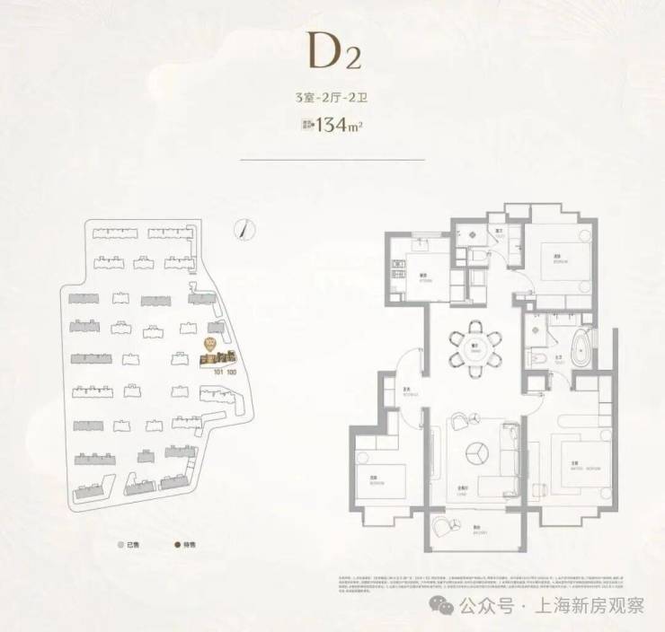 项目一期房型均呈现大开间、短进深的特点,主力房型为131㎡3房,占到一期总量的70%,其余房型为100㎡2房,155㎡3房,175㎡4房。项目一期于2022年11月入市,推出621套房源(C区),总认购1400+组,认购率225%,入围分55.28,开盘售罄!