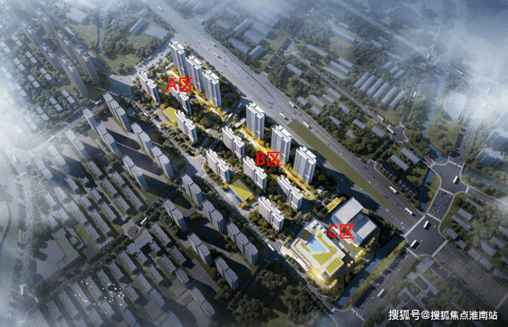 项目由3宗小地块组成,A区、B区住宅用地拟建14栋17-27F住宅,C区为商服