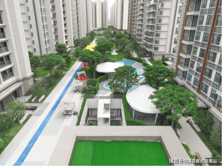 小区公区中规中矩,600㎡嵌入式阳光草坪、14种疗愈植物、一米菜园,加上有氧健康跑道、萌宠乐园、全龄化成长娱乐天地、开放式会客厅等景观设计,保证各年龄段的人都有自己的休闲之所。