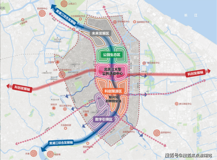 复兴岛也正式被定义为“国际创新创业岛”,围绕“⼀核·两轴·四区”来建设发展,岛上将形成户外文体、文娱、研发孵化、创新创业等四个片区,总体打造未来城市实验区、创新创业和人才集聚区、空间智能创新先行区,形成 “科创+艺术+生态” 的复合功能。