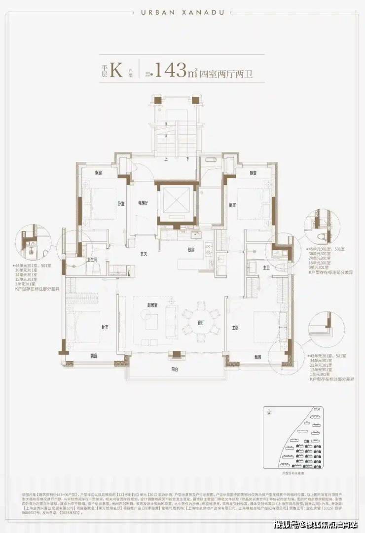 建面约139㎡上叠户型,三层是会客区,四层是居住区,阳台+露台+多个飘窗设计,附加空间非常大,在别墅类产品中实属罕见!