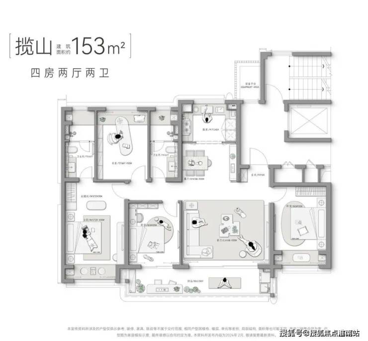 在户型设计上,项目涵盖了建面约153㎡、183㎡、198㎡、223㎡的多种户型,均采用四开间朝南设计,保证了室内的采光通风效果。其中,建面约153㎡的户型为4房2厅2卫,拥有酒店级行政套房、独立衣帽间与卫浴、全尺度四房格局、餐厨一体设计等亮点;建面约183㎡的户型为4房2厅2,拥有双联巨幕阳台、星级酒店式套房、入户玄关处打造储藏间等特色。
