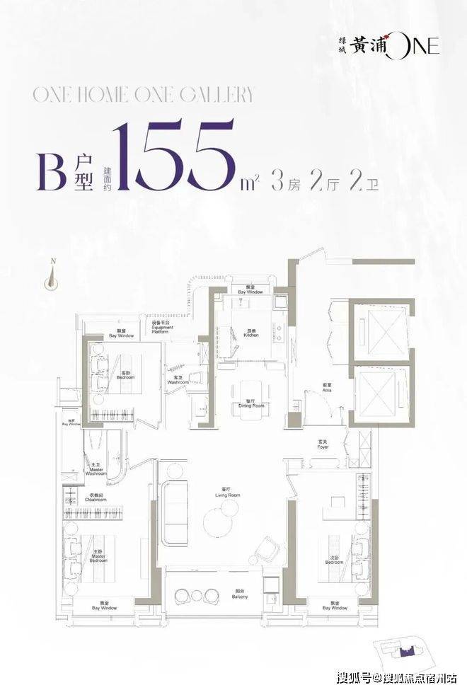 建面约155㎡三房两厅两卫(主力户型)