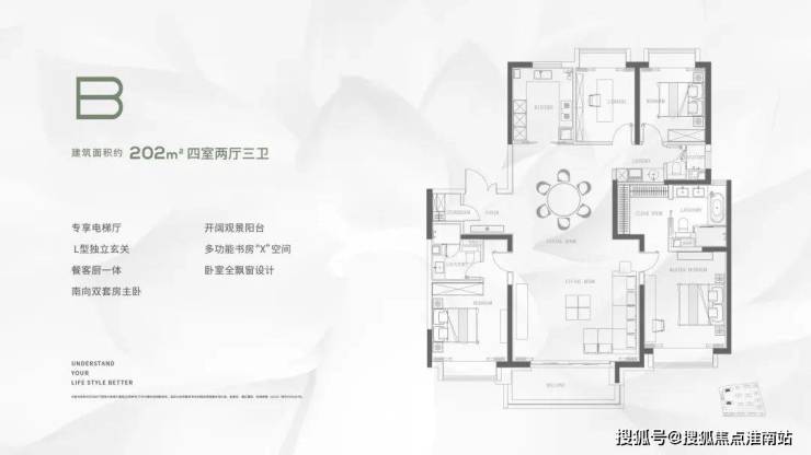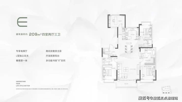 这是项目收官之作,推出的2栋楼,分别是12、16小高层,位于小区第一排,景观视野佳,俯瞰风貌别墅区。尤其是209㎡四叶草格局的王炸户型,独立电梯厅、国际一线精装、双会所、约3.5万方园林景观、无边际服务、自带约10万方合生汇商场配套,约500米一线临江。