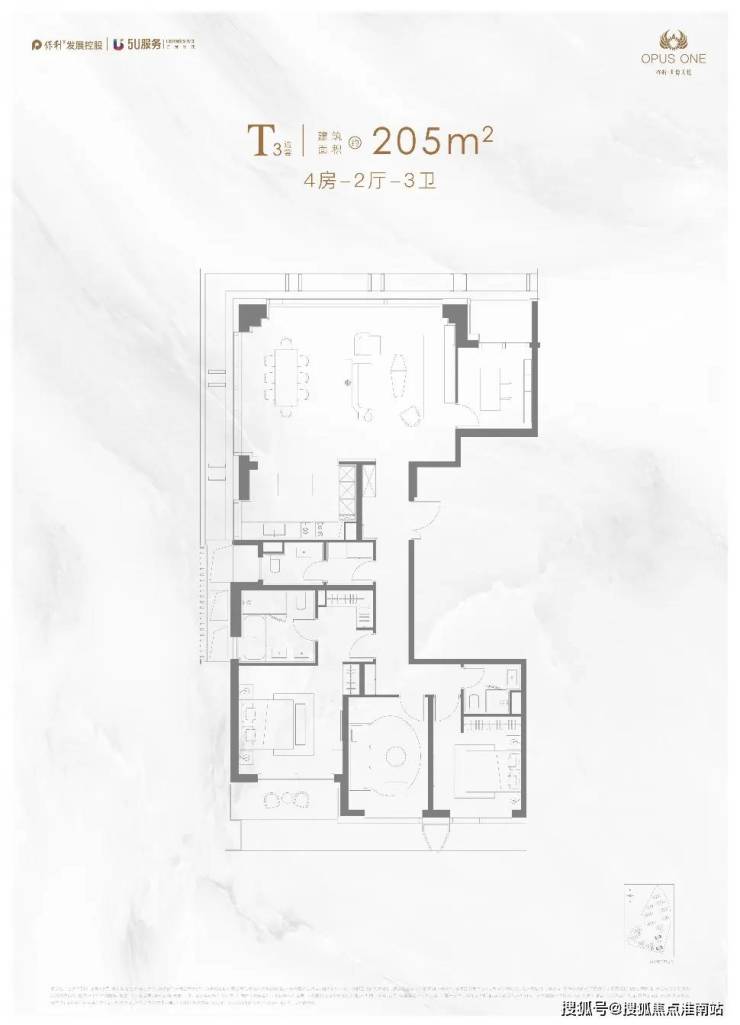 ⑥ 174m²客厅8.2米/奢侈三房/主卧开间5.7米/最小卧室约14m²