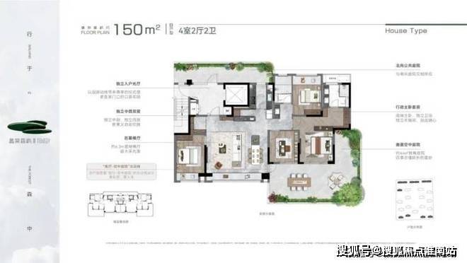 产品规划:建面约150㎡、185㎡、220㎡,户均约30-50㎡空中庭院