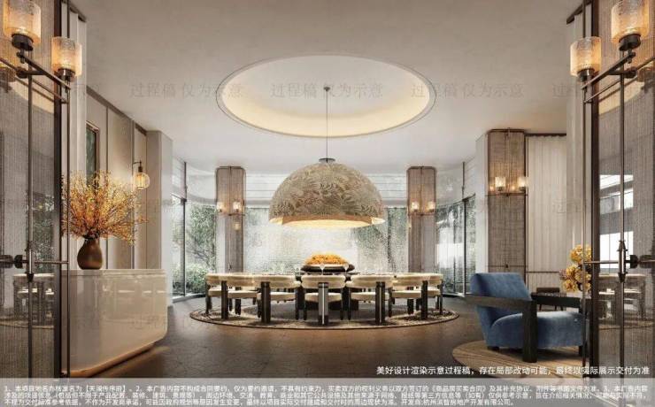 汲取《望海潮》世家场境,打造约1500m²下沉式会所,定制九大高阶生活场域,再现“钱塘参差十万人家”的望族生活日常。