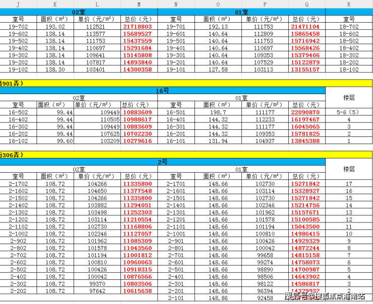 最新一房一价表: