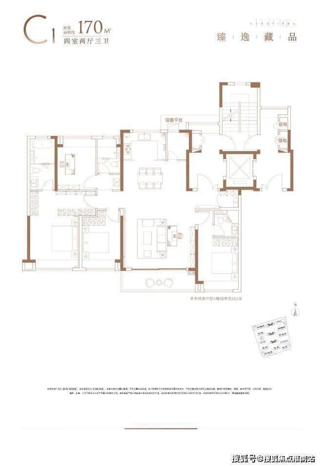 170㎡大平层:南向四开间约15.4米,主卧套房+双卫设计,边户享270°飘窗及转角阳台
