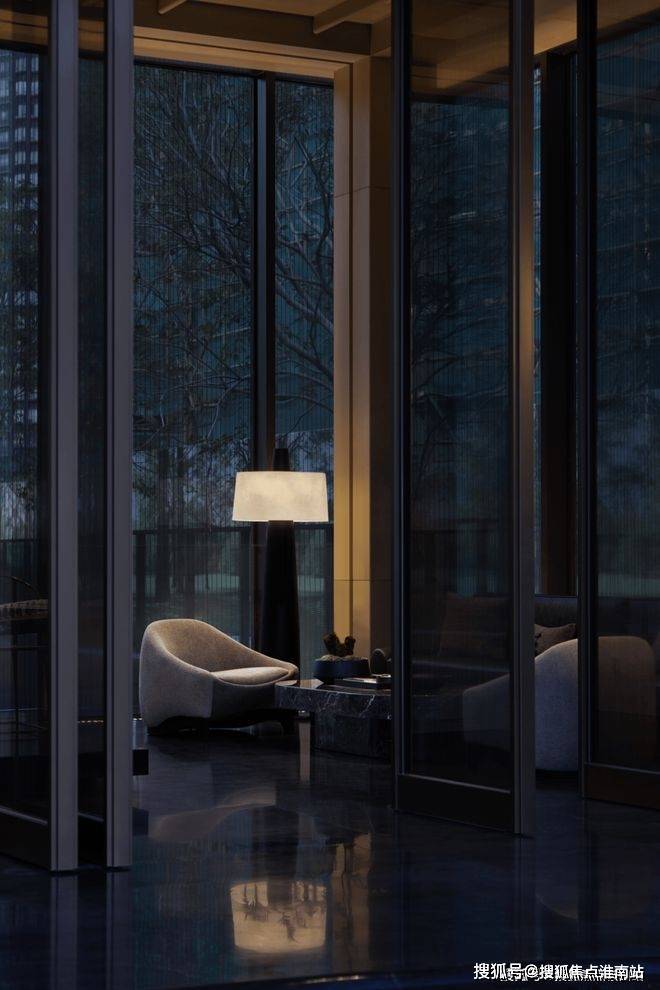 柔光几盏,窗影隐约,水波似平未平,天色将明未明。在这暗调之中,繁华、喧闹的城市外象被调和、静寂,四周沉下来,向着这面幽深如镜的水,敞开那华彩而井然的空间内里。