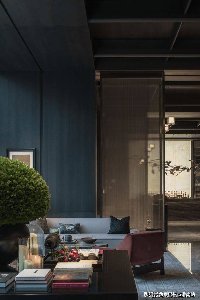 由洽谈区转向,两道折门打通了向书吧及私宴空间行进的路径。
