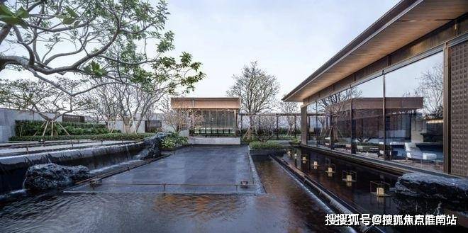 打造长约200米、近1000㎡水系景观,贯穿入口、庭院、归家轴线和景观主轴,采用五重造水形态,可行、可望、可游、可居,正是中式园林所追求的空间意境。