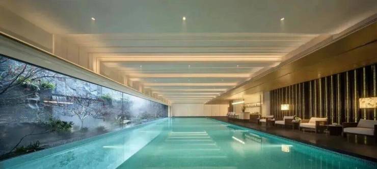 古驰黑奢石与非遗琉璃共筑的背景墙,映照着窗外由天然岩皮与奢石砌成的三级瀑布。羽毛枫在岸边隔窗静立,泳池全地暖设计,恒温脉冲水流轻抚肌肤,并于岸边打造镜湖春晓奢石、搭配贝壳艺术背景墙设计的酒店式水吧台休憩区,布置全套安缦御用的HARBOUR户外家居。【溪谷泳池】游弋其中,是一次对自然与艺术的全身心沉浸