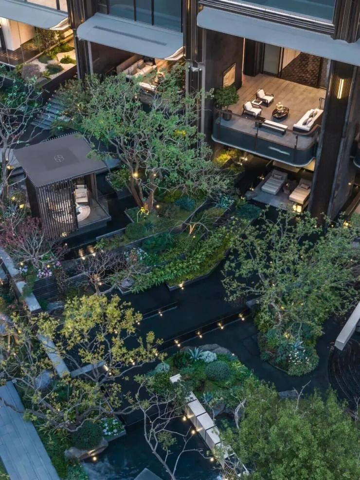 山川溪谷与休憩架空层空间共汇,于庭园深度,打造一处可游、可观、可赏的自然谧境。